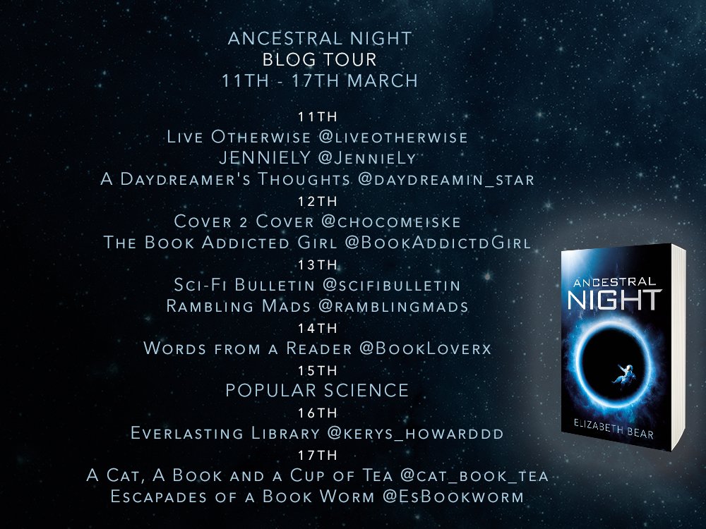 I confess the cover for Ancestral Light almost put me off it completely. But I’d expressed an interest and was on the blog tour and had my fingers crossed that I wasn’t going to be bored silly by some over populated space opera laced with science references I didn’t have a clue about.