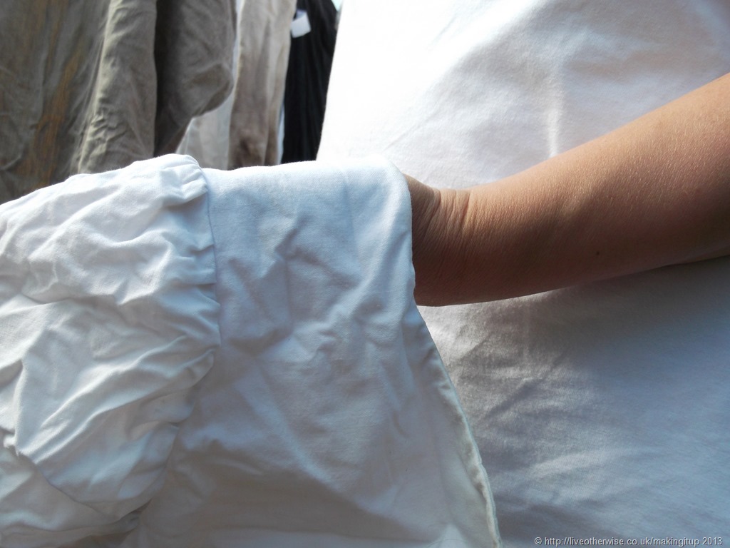 White. white linen, about to be hung on a washing line. Smallest’s coif, after Kentwell