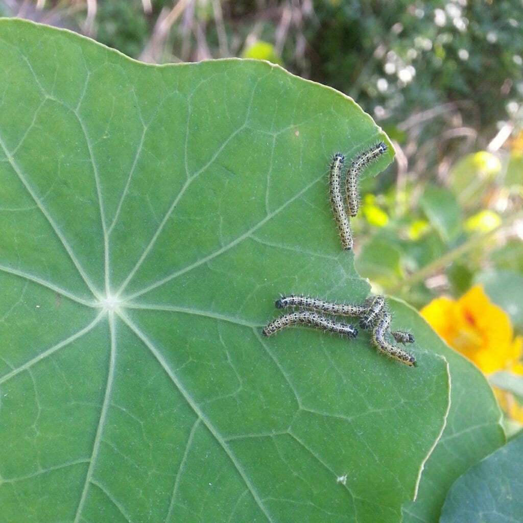 We have had tons of cabbage white caterpillars on our nasturtiums too this year and decided to bring a few inside. The kids loved watching them create each chrysalis and they all successfully emerged as butterflies. They’ve no doubt headed straight back for the nasturtiums to lay eggs and create more caterpillars to chomp though them. 🙂