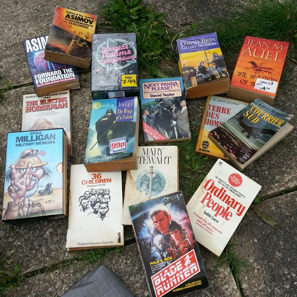 We have a lot of boxes. Rather too many in fact. Partly because I’m really bad at making decisions on what to do with stuff, so instead I don’t, I just kind of stack it. Which isn’t sustainable over a lifetime, as the garage demonstrates. Damp boxes though have to be processed, so I’ve dealt with around 30 boxes I think, though I have rather lost count, and now the car is stuffed full of stuff to go to the charity shop, some much loved but very soggy books are in the recycling, and for once the bin is actually full.