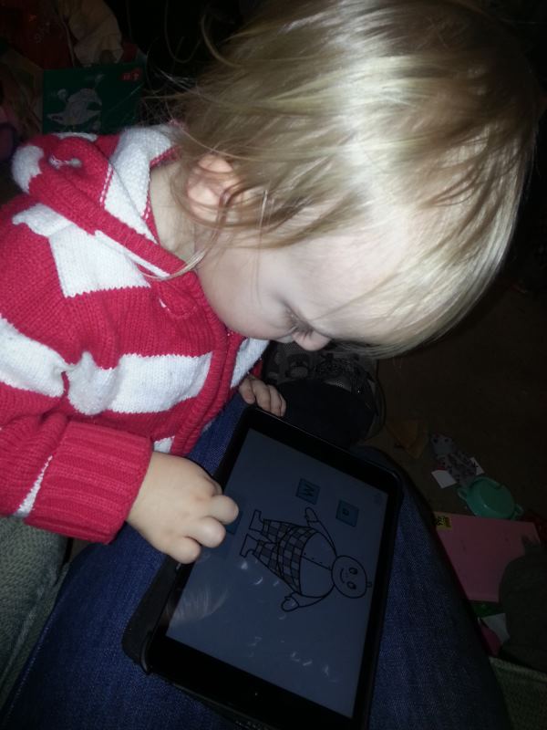 That was him before dinner, with the iPad mini (thank you Netmums!) and a Bob books app. He had it cracked very very quickly although there was a moment of panic when he got to level 3 and it didn’t have the letters in the words to drag the tiles on to. Made me realise he was doing most of the matching visually, but he quickly figured out how to do it without any hints. He’s a bright lad. If he wants to come up with his own method of learning to talk, I’m sure it’ll work out fine in the long run.