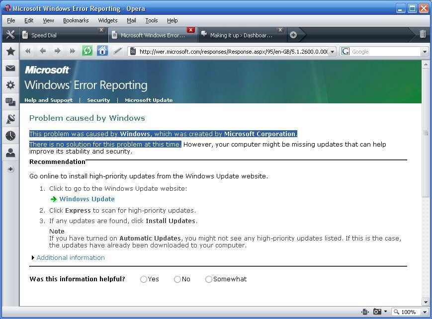This problem was caused by Windows, which was created by Microsoft Corporation.