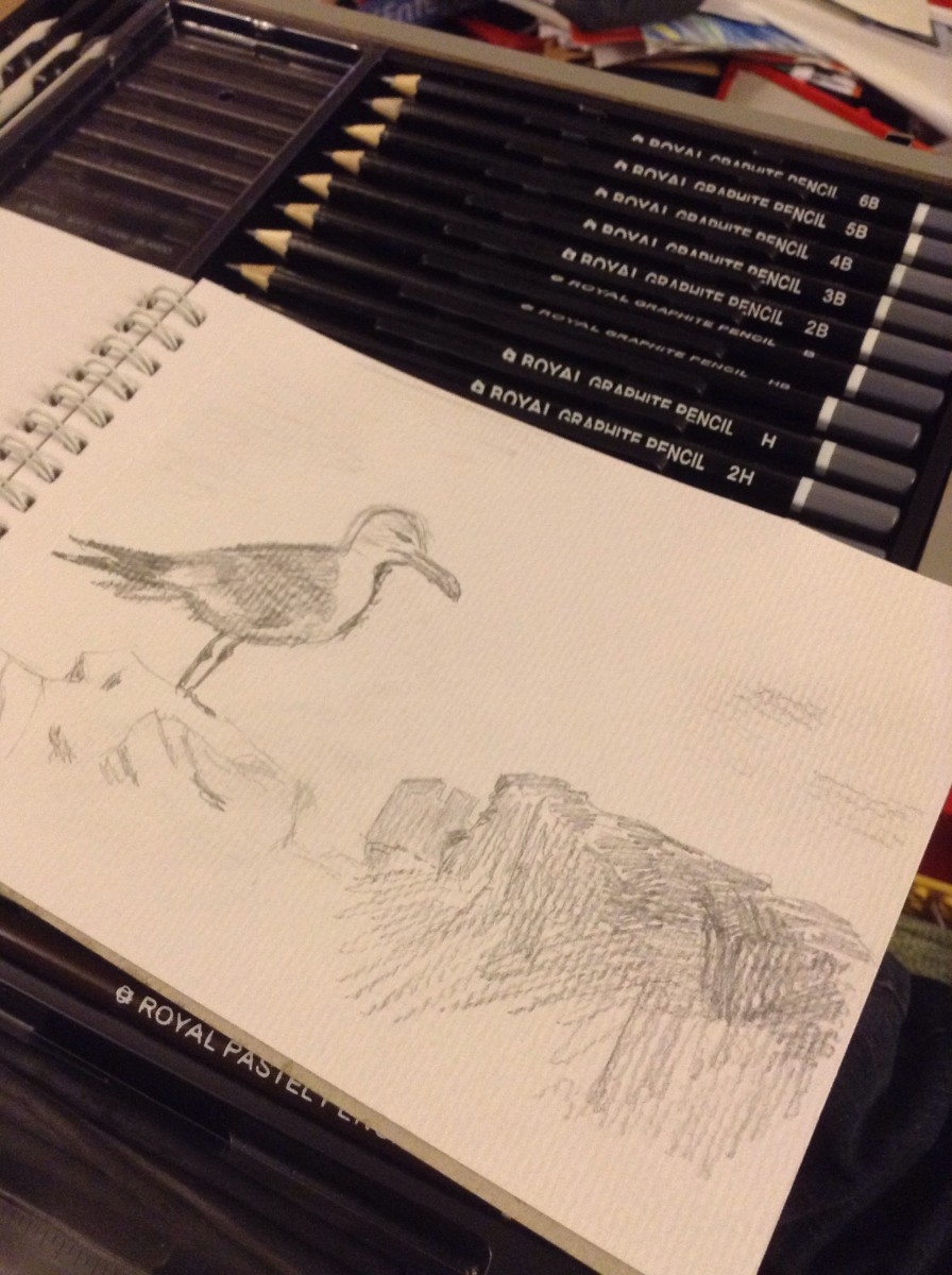 This isn’t just a seagull, this is a symbol of friendship. Susan sent me the sketch set used to draw it as a surprise present, this sketch is by way of a thank you.