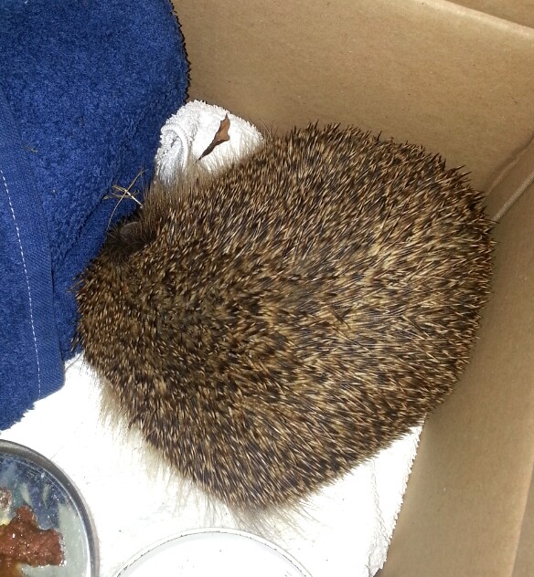 If you find a sick or injured hedgehog in your garden, put on gardening gloves and install it in a cardboard box with a heatpad, some water and meaty cat food. This is the advice from the British hedgehog society.
