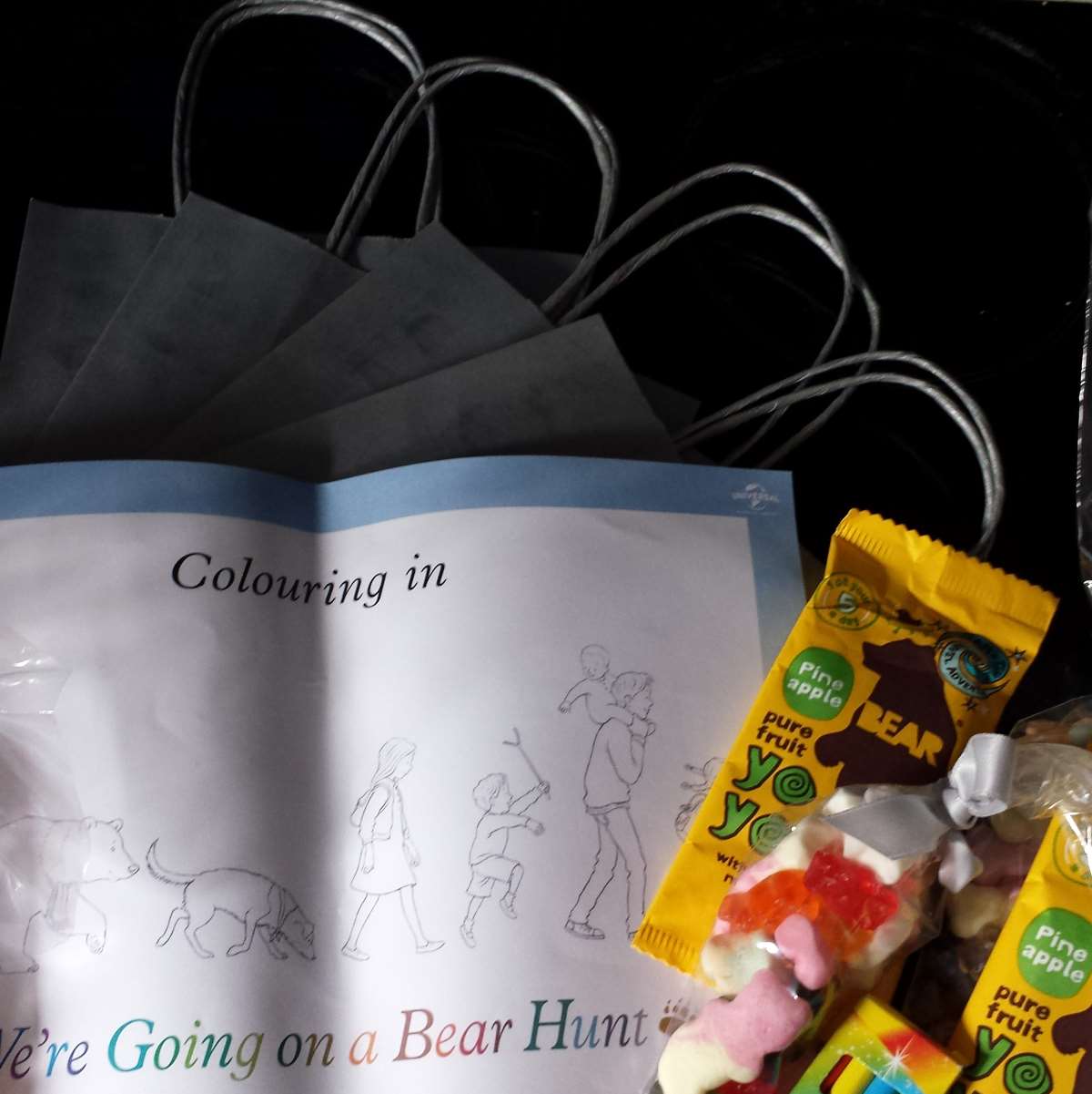 Other activities you could include in your party – a bear hunt treasure trail, either inside or out, depending on the weather. Or how about a bear hunt memory game – I went on a bear hunt and I took a something with me. Then the next person has to repeat the first person’s thing and add their own and so on. And of course, no party is complete with goodie bags – ours were bear themed of course.