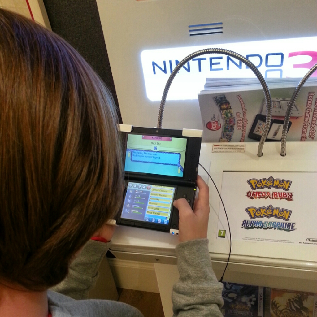 So, Pokemon games come in pairs. Black and white, X and Y, gold and pearl? This is designed to enhance trading – Pokemon games are very social. This new generation is built around the Aeon? ticket which can pass from game to game through the streetpass system. (I’m probably getting this all wrong. I should have taken notes from the very helpful demonstrator today!)