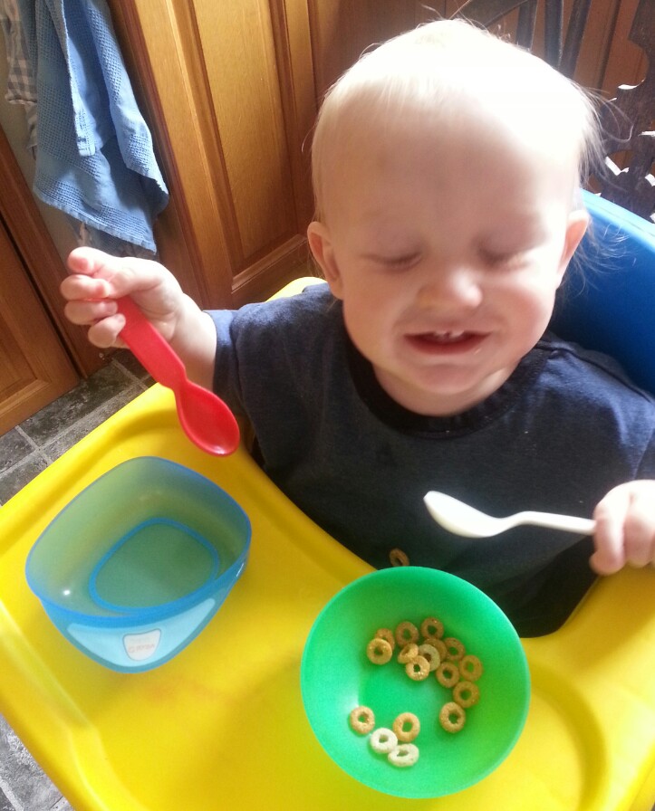 Big is learning to do eyelets and doing a lot of them. That’s what tudor clothing does for you. Small looked up and ordered a book from the library! This is a huge step for him. All down to the Pendragon series by Katherine Roberts. Smallest has had a slightly miserable week, but we have managed some arts and crafts. Tigerboy is working on that change from a baby to a toddler. Bittersweet.
