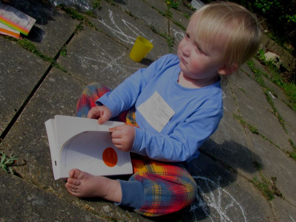 Roughly why I took the picture. He ran off with it from my pile of books – ignoring the picture book that was on there!