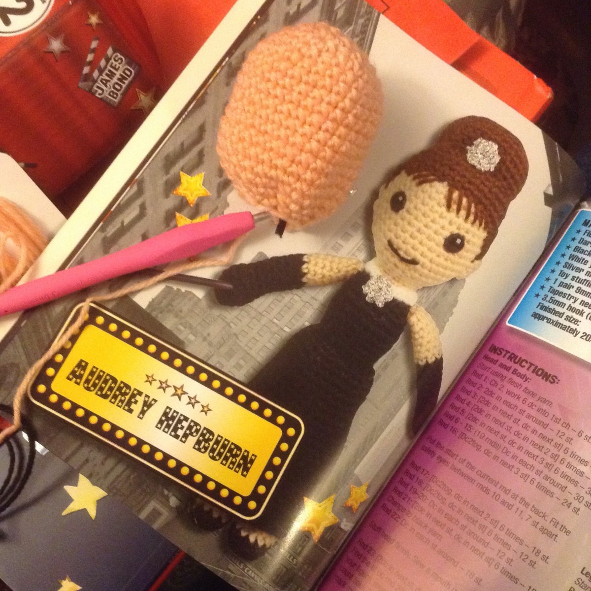 {making} Audrey Hepburn. I had to frog her chest area – the instructions weren’t clear enough for my slightly foggy brain, and I basically managed to put her breasts on the side instead of the front. Not a good look. Even in a little black dress as they are. Still trying to keep going though.