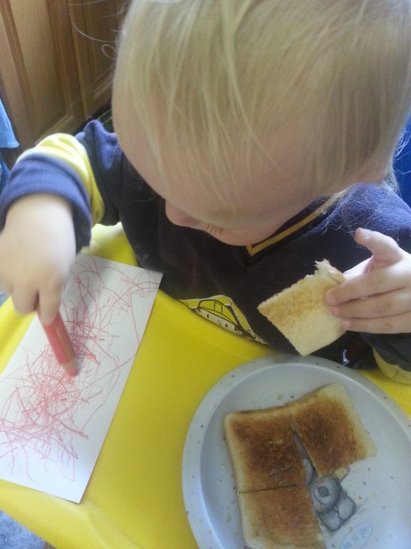 Tigerboy liked the felt tips too. But until I manage to convince him what is OK to write on and what isn’t, I think I’m going to stick to crayons as slightly less dangerous.