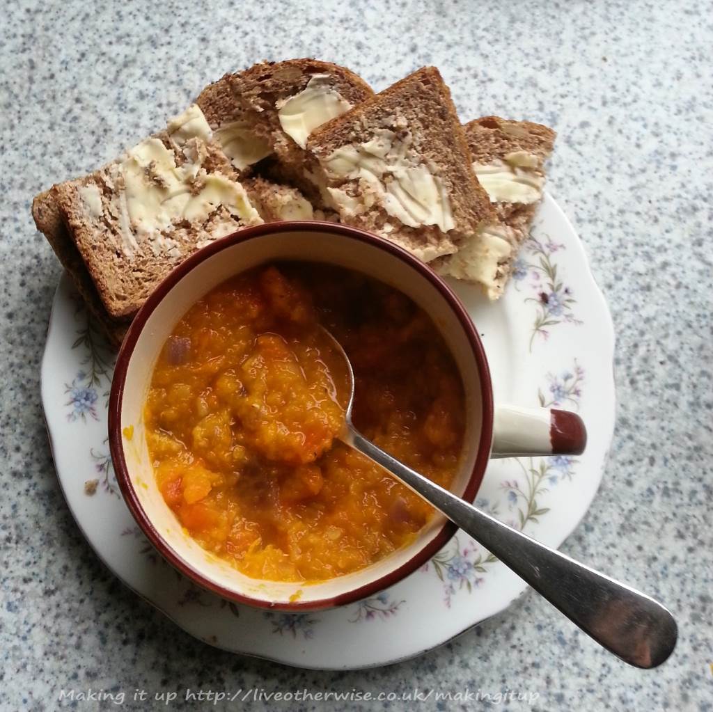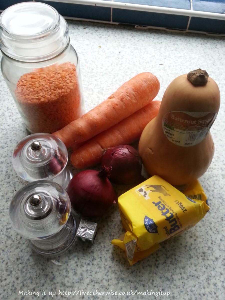 So here you go: Butternut squash and lentil soup.