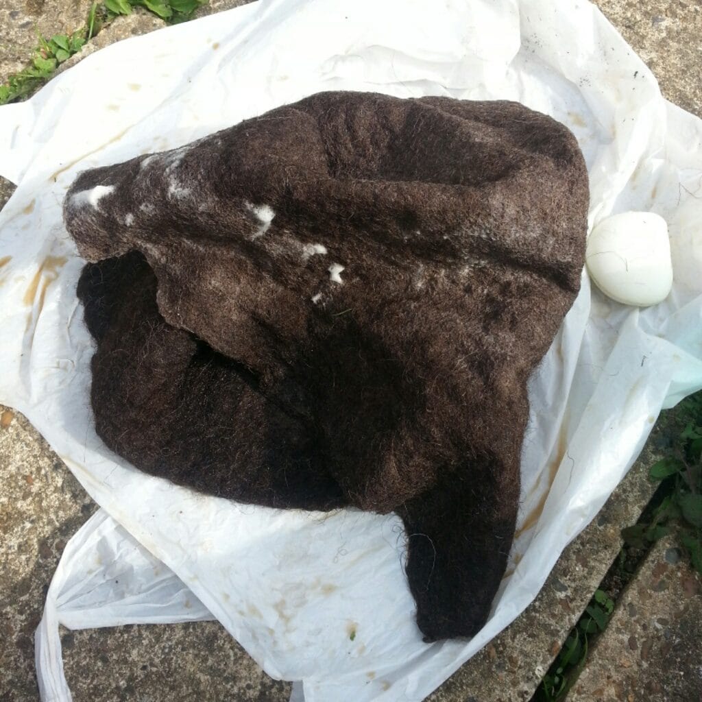 Afternoons are looser. Today I spent quite some time outside with a pile of wet felt.