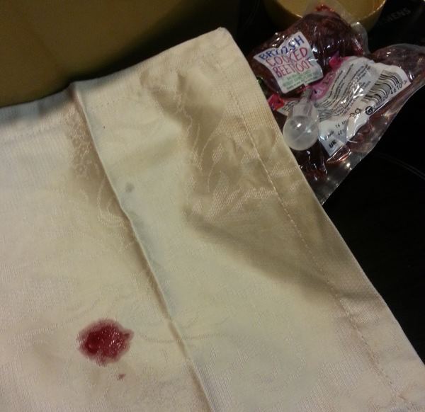 It’s not every day I get to make a stain for myself. Usually I’m doing the cleaning up. But today I got to play with the beetroot, and drip it onto the napkin.