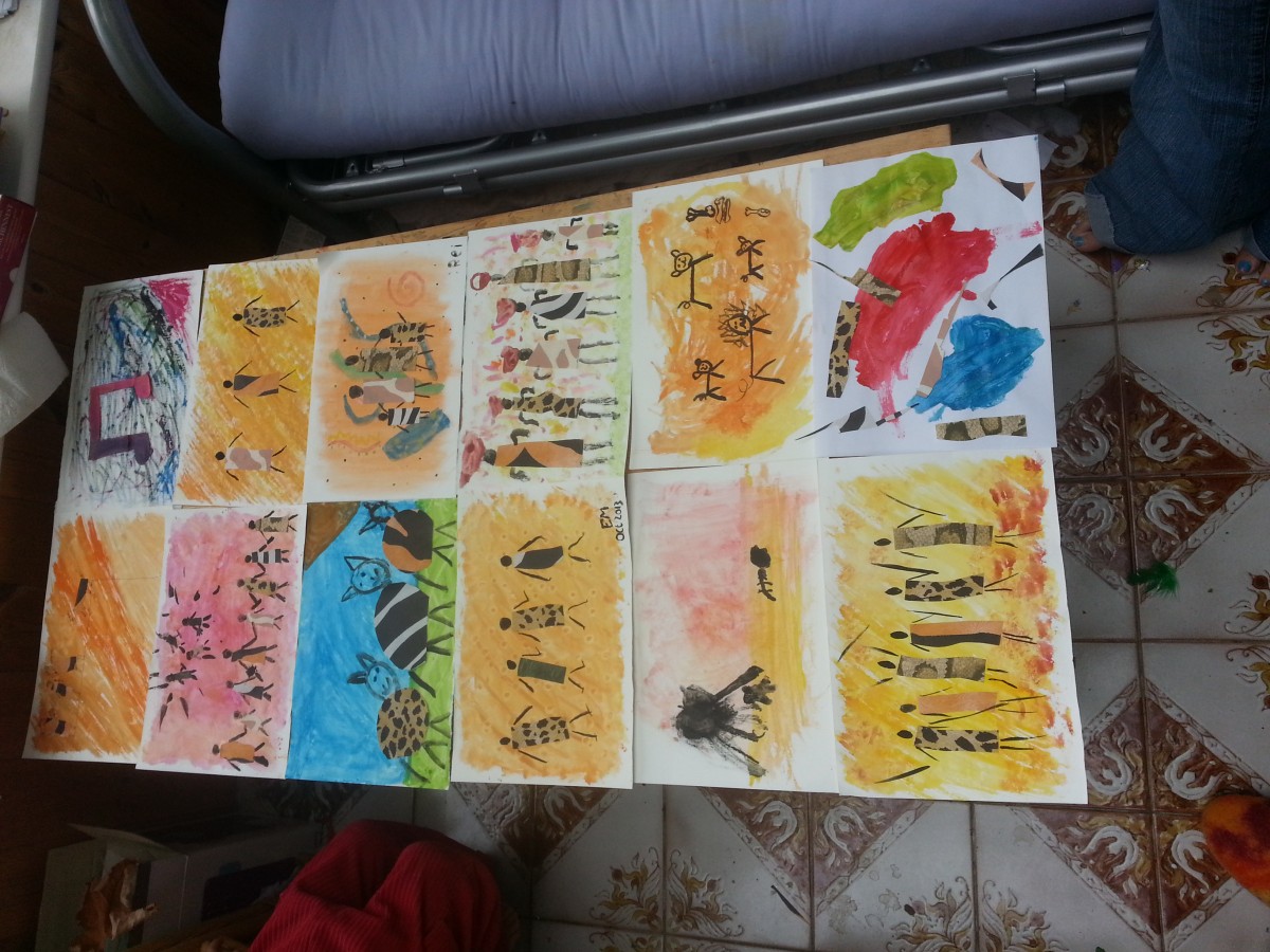 Loving the Africa art – was it fabric samples or printed material, with crayon and watercolour?
